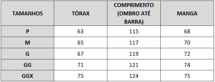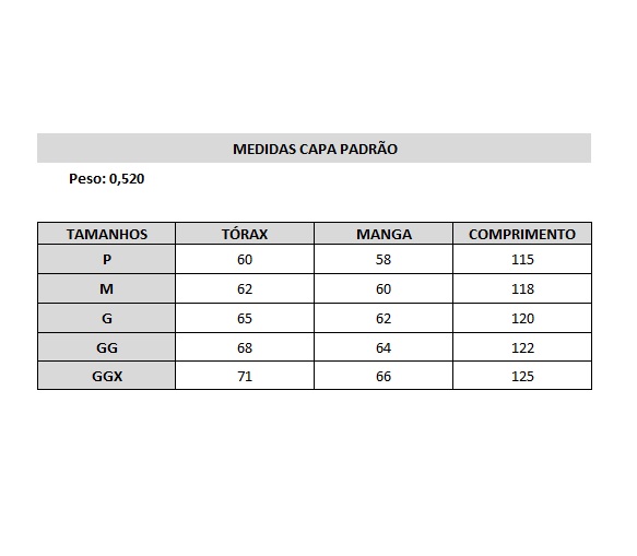 QUAL O TAMANHO DAS CAPA GGX NO TÓRAX?