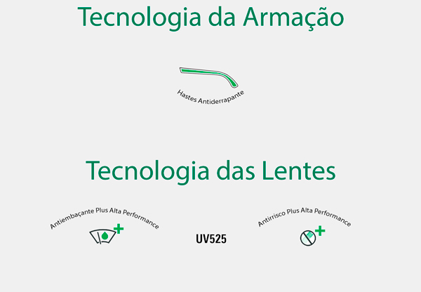 O design atraente e ergonômico do modelo 546 proporciona um encaixe perfeito ao rosto do usuário. A ponte nasal emborrachada e as hastes envolventes oferecem um excelente nível de conforto, ideal para uso prolongado. Além de ter proteção conta luz azul até 525nm.
