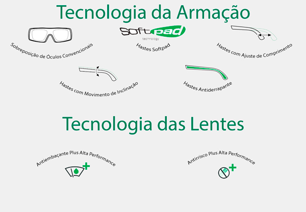- Integração perfeita com óculos graduados convencionais;
