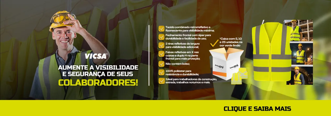 Botão para ver detalhes do produtoColete Verde Limão Vicsa RFX Sem Bolso - Caixa ( 0 ) R$ 104,62no pix ou boleto ou 10x de R$ 11,37